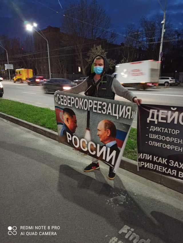 Під час акції активісти тримали плакати з зображенням Путіна у вигляді Гітлера та Кім Чен Ина, а також з надписами «Северокореезация России», «Дон Карлито! Свежие фейки подано!», «Доктор зло существует», «Диктатор-шизофреник с комплексом Наполеона», «Послание Путина – это лапша и поток дезинформации».