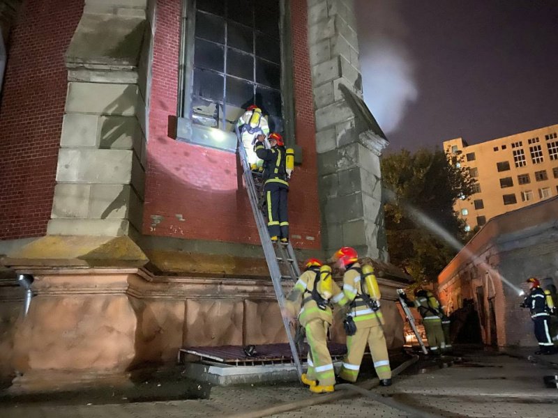 Після 22:00 з’явилася інформація, що в Києві горить костел Святого Миколая, який розташований у Печерському районі. На місце події негайно ж вирушили рятувальники.