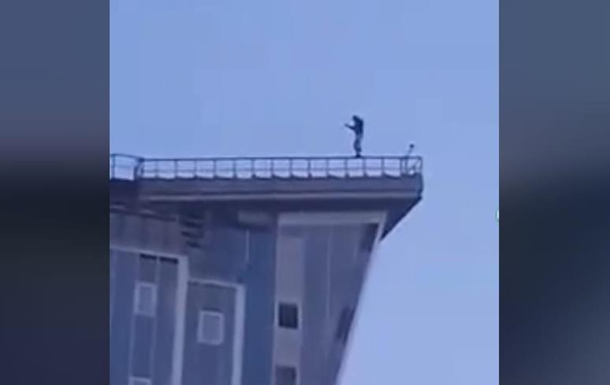 «Хлопець балансував на слизьких поручнях, ризикуючи зірватися вниз. Коли йому набридло ходити на поручнях, він почав роздягатися», – йдеться у підписі до відео.