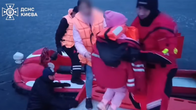 У Києві мати з дитиною дрейфували на крижині за 200 метрів від берега. Відео