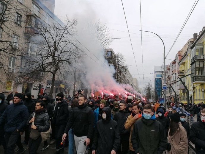 У Києві 23 лютого мітингували біля Офісу президента, там були сутички, затримали 24 людини, але потім відпустили.