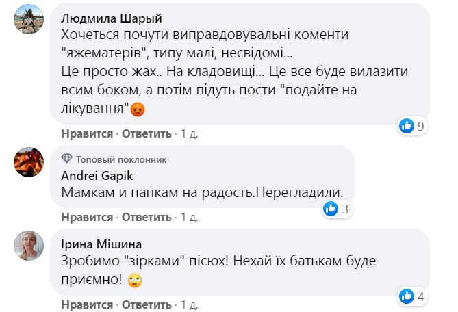 На ньому видно, що на кладовищі за столиком дівчата розпивають алкогольні напої, кричать і співають російськомовні пісні.Користувачі соцмереж у коментарях під дописом висловлюють своє обурення такою поведінкою дітей.Як ми писали, в Одесі компанія відпочивальників вирішила влаштувати пікнік біля Вічного вогню на Алеї слави. Днями на меморіалі Героям Небесної сотні у Львові дівчата гучно відсвяткували день народження подруги з танцями, алкоголем та феєрверком. У березні підлітки з Луцька влаштували на кладовищі танці й фотосесію з портретами померлих людей, а потім опублікували відповідне відео в соцмережі TikTok.