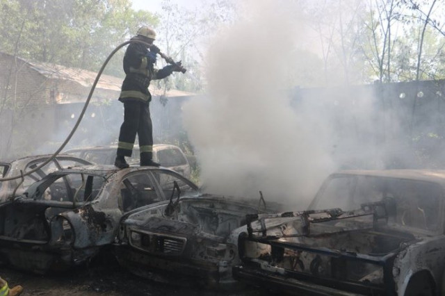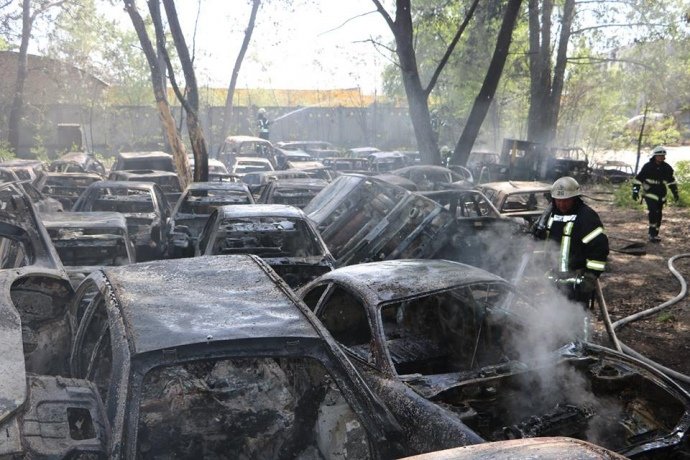 Прибувши на зазначену адресу, вогнеборці встановили, що на відкритій автостоянці горить близько 54 автомобілів.