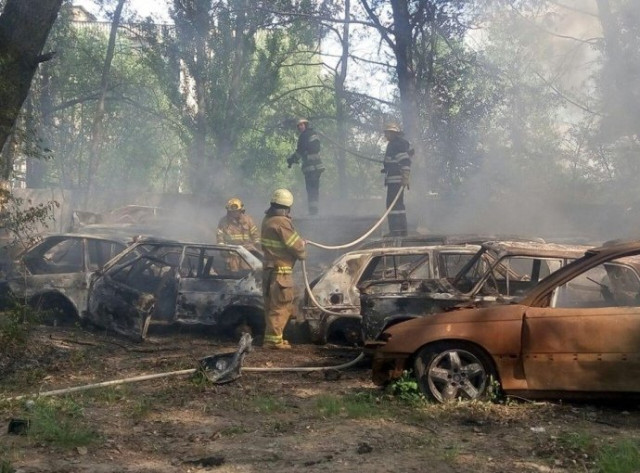 У Києві на Столичному шосе на автостоянці горіли 54 автомобілі. Загиблих та травмованих немає.