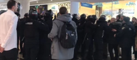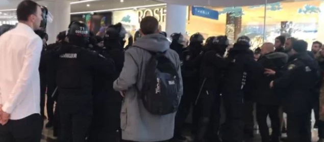 Поліція спробувала завадити захопленню будівлі, оточила радикалів і спробували вивести їх з торгового центру. Внаслідок цого виникла сутичка. Правоохоронці затримали заступника голови «Сокола» Івана Косенка.