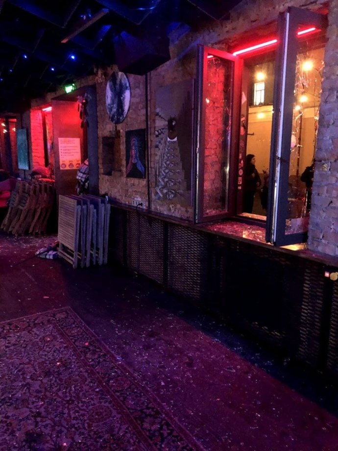 В приміщенні бару було близько 15 відвідувачів, троє діджеїв з Берліну та команда ще із трьох людей. Бармени встигли закрити двері на ключ, але двері почали виламували. Відвідувачі тримали двері, щоб невідомі не потрапили всередину.