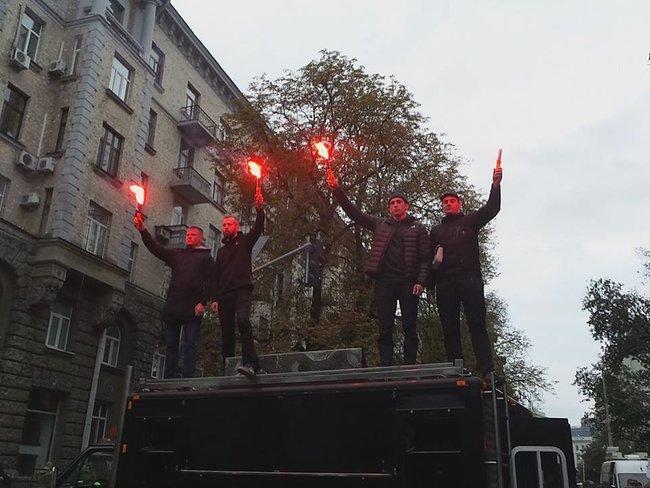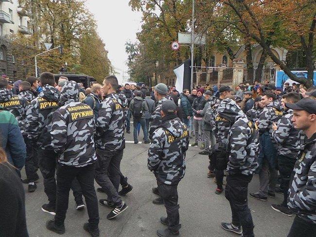 Також на місці збираються активісти «Національних дружин», «Національного корпусу». За кордоном поліції вулиці Банкової стоять поліцейські автомобілі відеоспостереження, за ними декілька мікроавтобусів із гратами на вікнах для захисту від каміння, а також декілька вантажних автомобілів військового типу для перевезення людей. Наразі з імпровізованої трибуни зачитують імена активістів, які прибули на акцію. Акція відбувається з метою привернути увагу керівництва держави, зокрема президента, до численних фактів нападу на активістів та тому, що силові структури належним чином не розслідують дані злочини.
