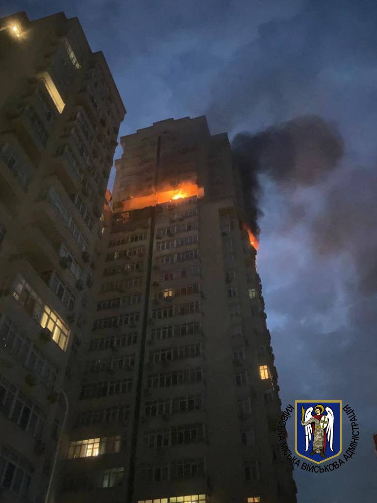 «Через влучання уламків в 25-типоверховий будинок в Соломʼянському районі сталося часткове руйнування будівельних конструкцій на 16, 17, 18, 19 поверхах (18-найбільше) будівлі із загоряннями окремими осередками по поверхах. Пожежу локалізовано о 04:40, ліквідовано о 06:30», – додав Попко.