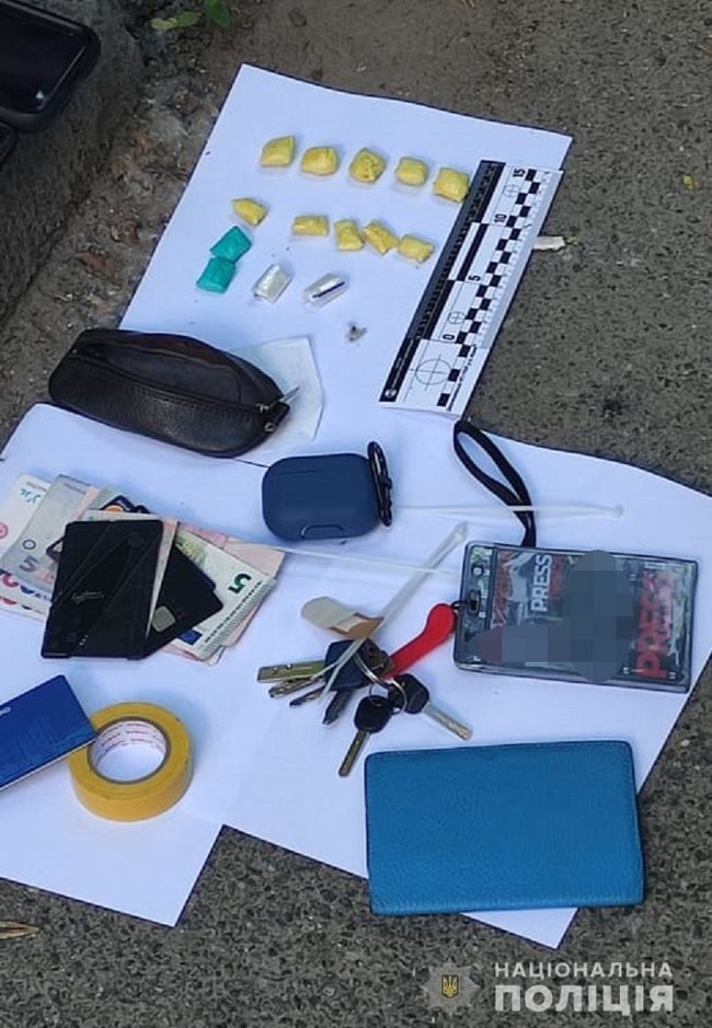 При спілкуванні стало відомо, що він робив «закладки» з наркотиками. У нього виявили розфасовані наркотики, гроші та посвідчення працівника одного з телеканалів. Зі слів затриманого, за зроблену закладку він отримував 60 гривень.