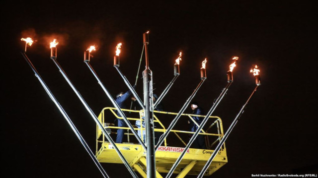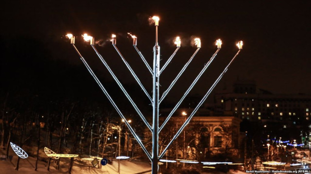 У Києві урочистості пройшли на Європейській площі, де і запалили головний світильник-менору, інформує Радіо Свобода.