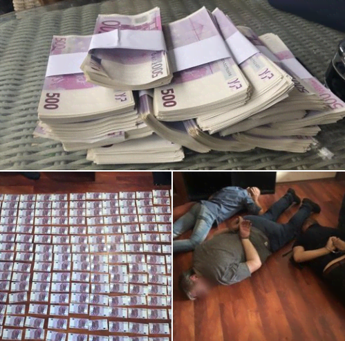 Під час проведення другого етапу спецоперації зловмисників було затримано та проведено обшук у приміщенні, де збували підроблену іноземну валюту. У ході слідчих дій правоохоронці виявили та вилучили майже 2 тисячі купюр з ознаками підроблення номіналом по 500 євро на загальну суму 998 тисяч євро.