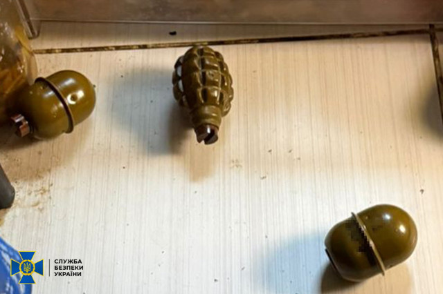 Під час обшуків у затриманого вилучено саморобну бомбу і складові для її виготовлення, мобільний телефон із доказами співпраці з РФ та бойові гранати.
