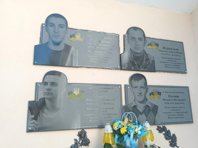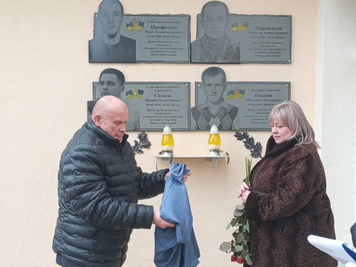 Розмістили пам’ятні знаки на будівлі місцевого ліцею. Вшанувати пам’ять захисників України прийшли односельчани, родини військовослужбовців, учні та педагоги ліцею, представники влади й духовенства.