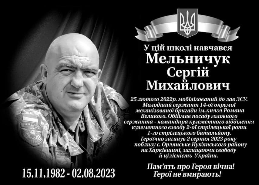 1 лютого 2024 року в Лобачівському ліцеї відбулося урочисте відкриття меморіальної дошки в честь загиблого Героя, випускника закладу Мельничука Сергія Михайловича – військового 14-ої окремої механізованої бригади імені князя Романа Великого.
