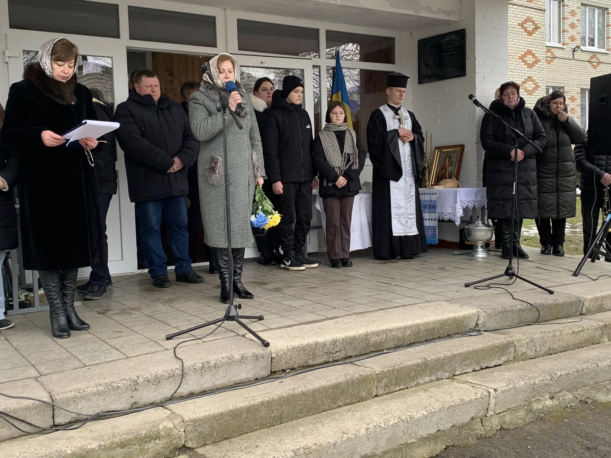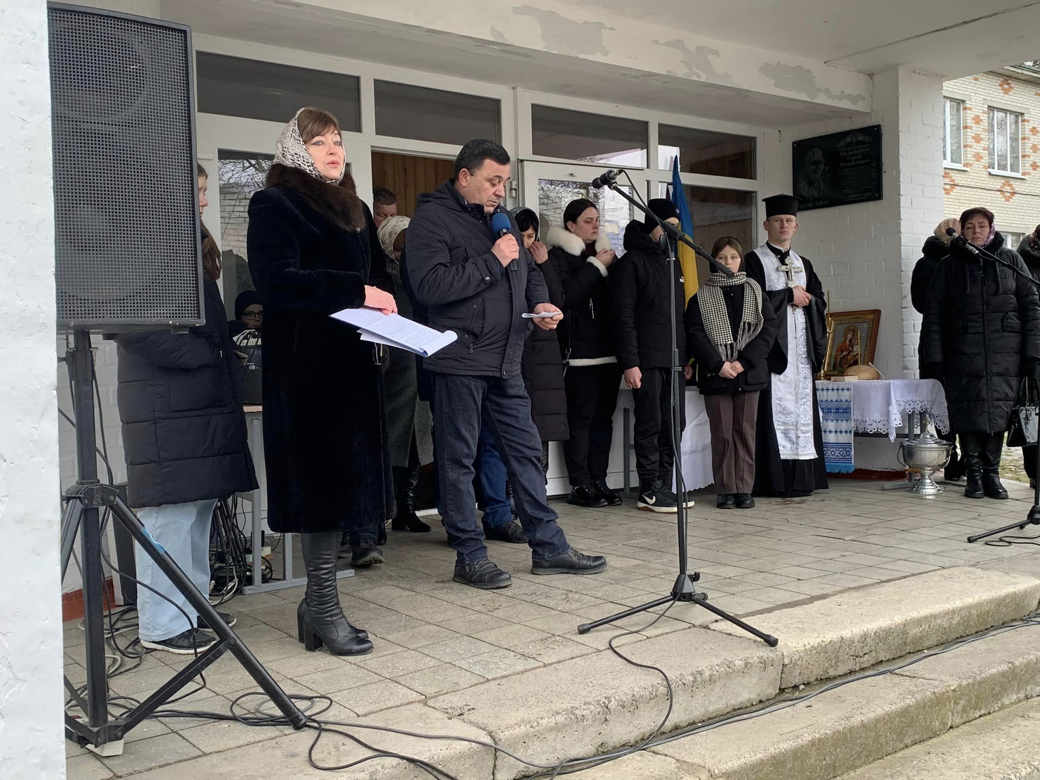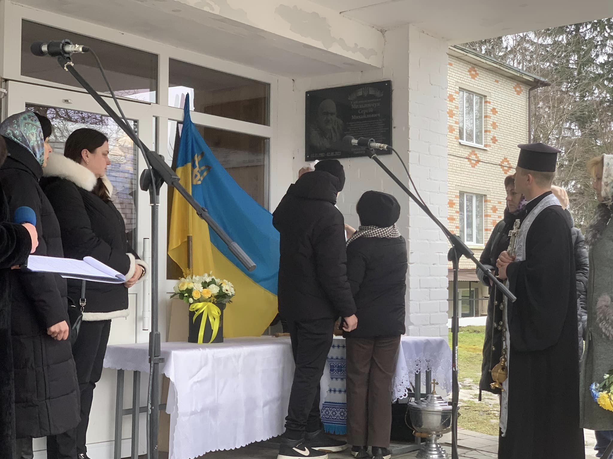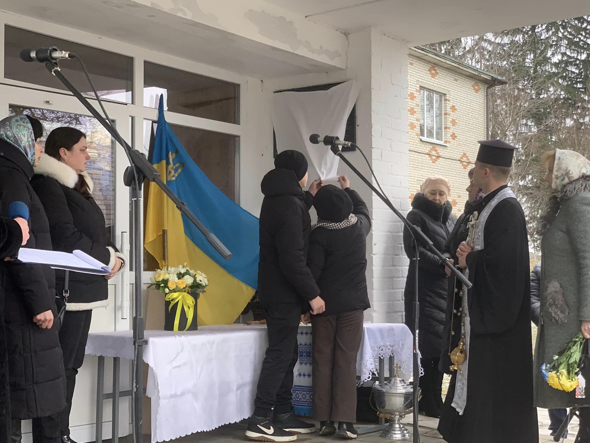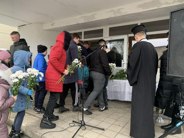 Честь відкрити пам’ятну дошку, встановлену на будівлі навчального закладу, була надана дочці Дарині та сину Героя Михайлу.
