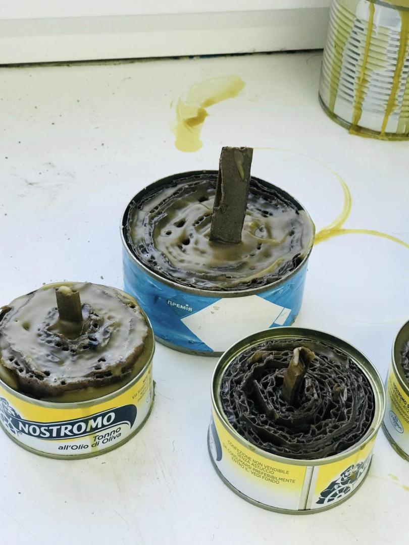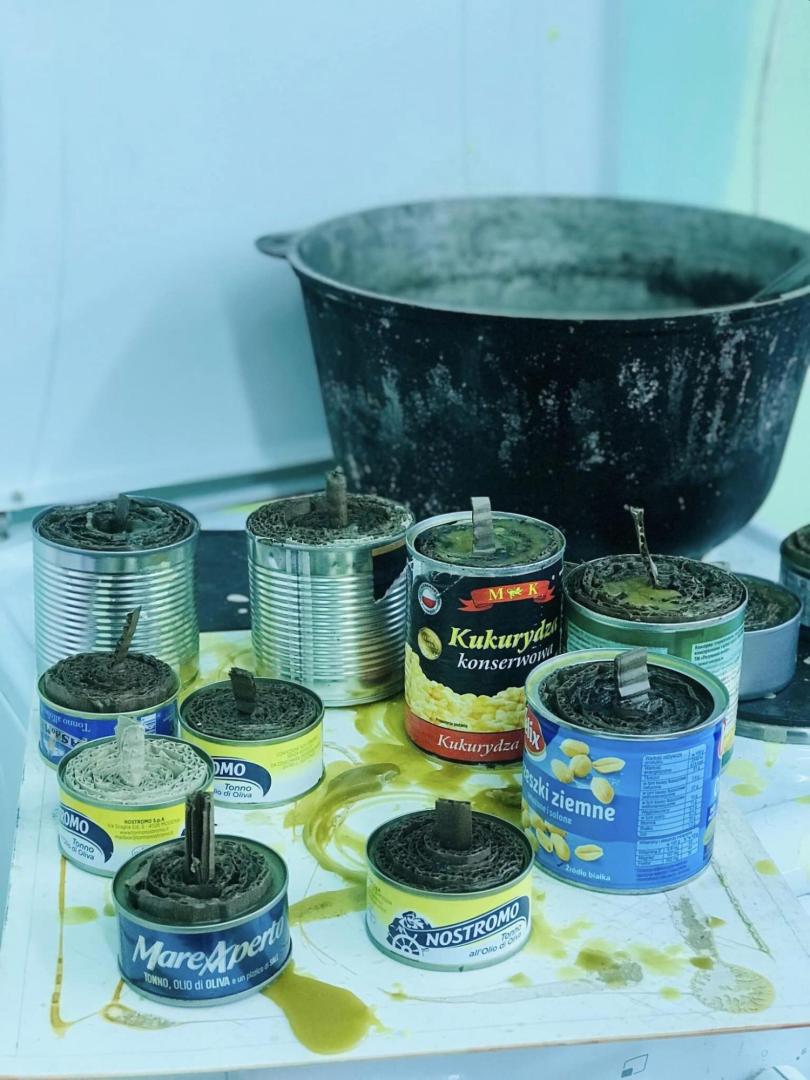 Бляшанки, віск та картон, які зазвичай потрапляють на смітник, у Баївський ліцей везуть звідусіль. Тут із цих матеріалів виготовляють окопні свічки для українських захисників.