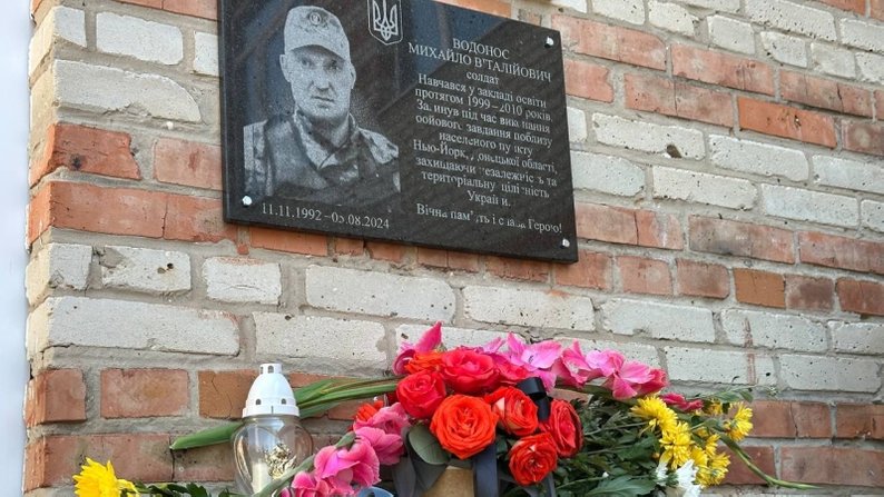 Меморіальну дошку на честь загиблого військовослужбовця Михайла Водоноса відкрили у на фасаді ліцею у селі Павлівка. Волинянин загинув 5 серпня 2024 року, йому було 32 роки.