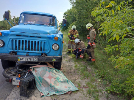 Потерпіла отримала травми, несумісні з життям. Водійку скутера затиснуло під передніми колесами вантажівки. Рятувальники 12 державно-пожежно рятувальної частини за допомогою спеціального обладнання дістали людину та передали медикам, однак врятувати жінку не було можливості. Вік жертви наразі невідомий.Нагадаємо, у Камені-Каширському в ДТП постраждав 17-річний мотоцикліст.