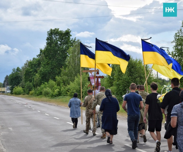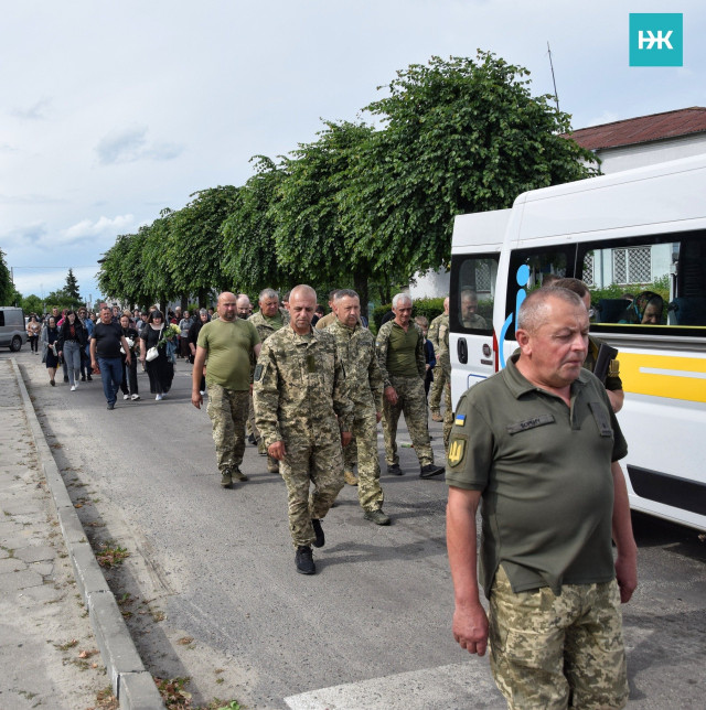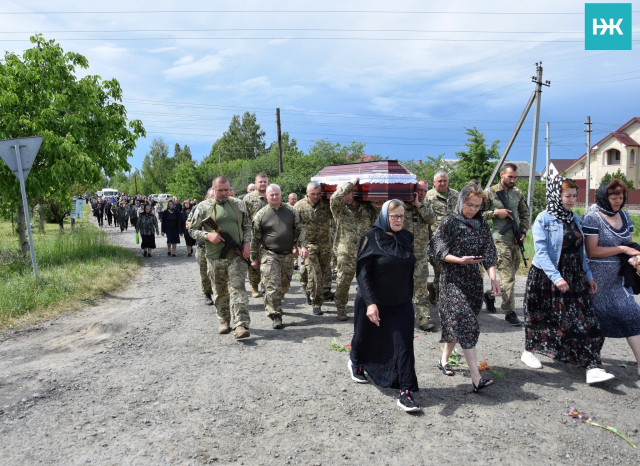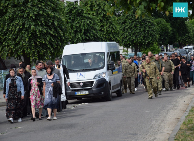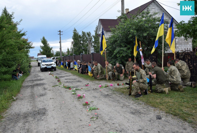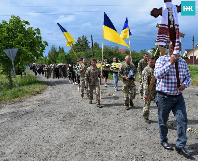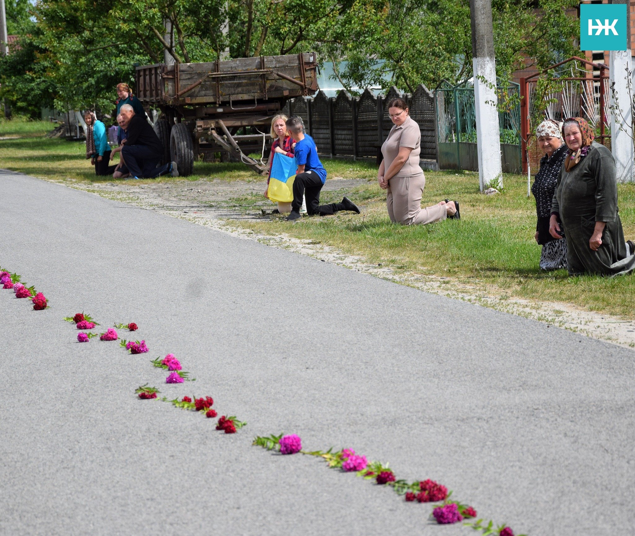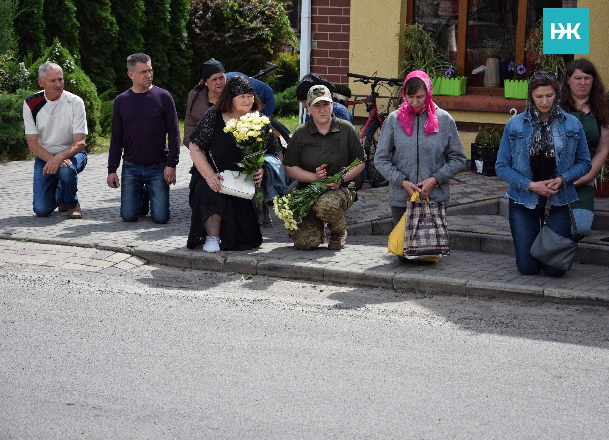 Провести Героя в останній шлях та віддати шану прийшли рідні, друзі, земляки й побратими. Жалобний кортеж проводжали навколішки, з квітами й прапорами.