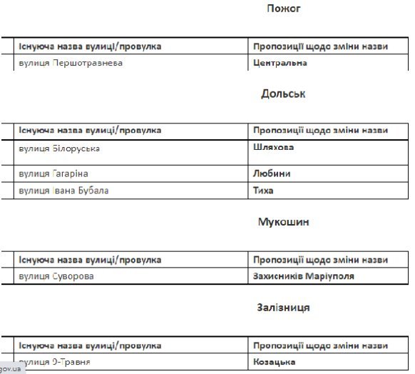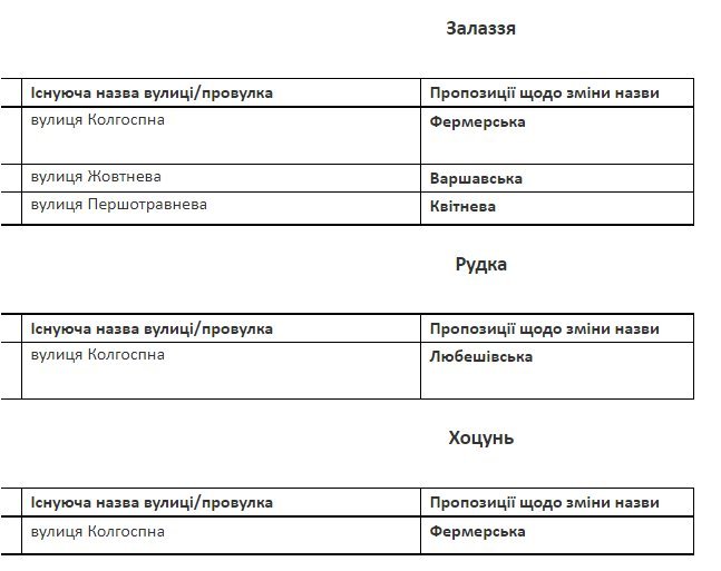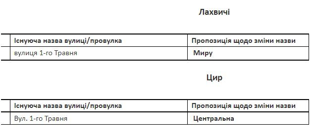 Відтак, рішенням Любешівської селищної ради від 15.09.22р. № 30/62 «Про перейменування вулиць та провулків на території селищної ради» було перейменовано низку вулиць згідно з додатком.