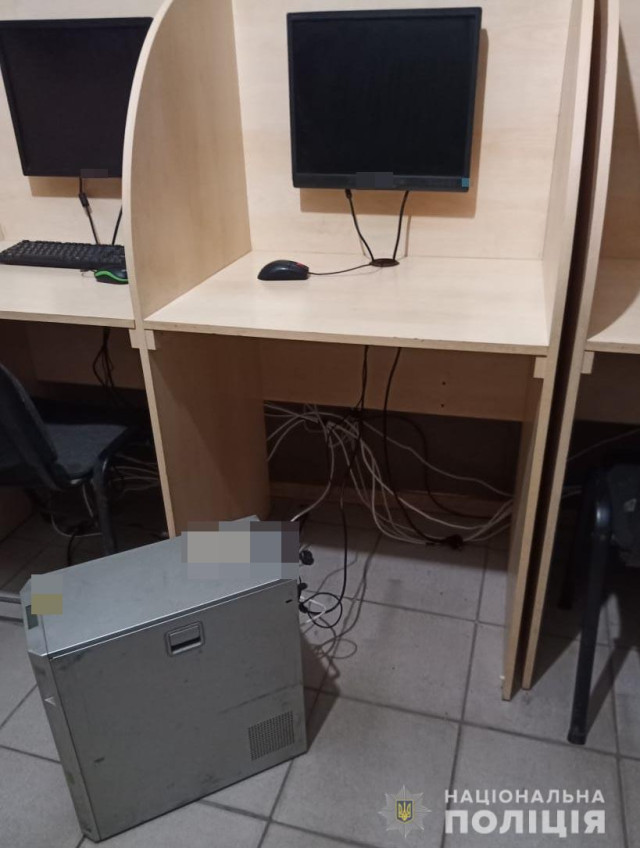 Там встановили, що приміщення, нібито для комп’ютерного класу, орендує 66-річний місцевий мешканець. У залі наявні шість комп’ютерних місць, а обладнання було відключене від електропостачання та Інтернет мережі. Всю техніку – два системних блоки, п’ять моніторів, п’ять клавіатур, вісім мишок та дві камери внутрішнього відеоспостереження – поліцейські вилучили.