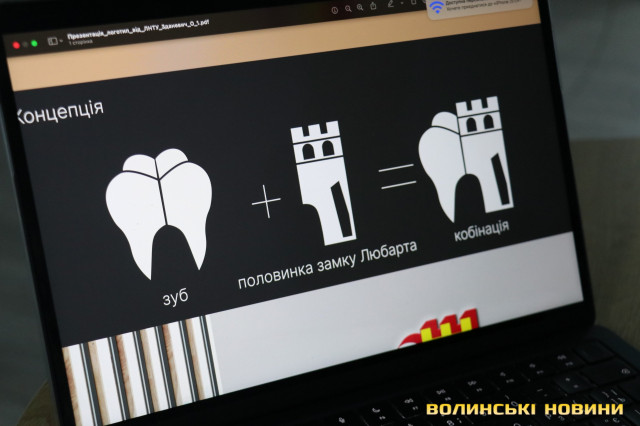 «В своїй роботі я обрала кольори міста, які притаманні нашій Луцькій міській раді – білий, червоний та жовтий, в цих кольорах зробила зуб і поєднала його із половинкою Луцького замку. Так народився логотип стоматології твого міста, тобто клініки Луцька, яку зможуть впізнати за брендом із нашим Луцьким замком», – зазначила Ольга Зданевич