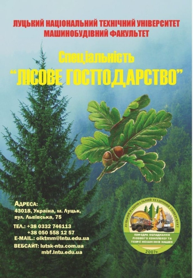 У Луцькому національному технічному університеті відкрили спеціальність "Лісове господарство". Цього року відбудеться перший набір. Поки що навчатися можна буде лише на бакалавраті, проте незабаром планують відкрити магістратуру, - повідомляє Конкурент.