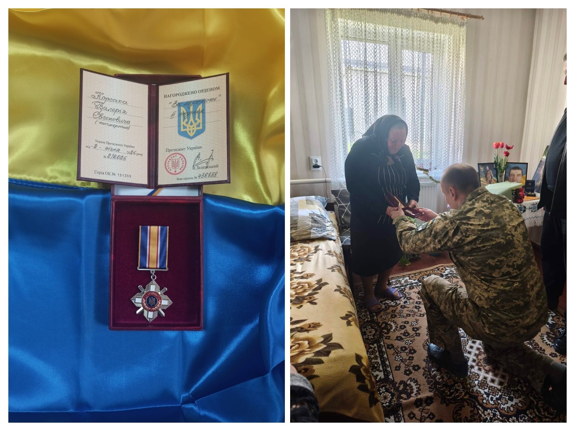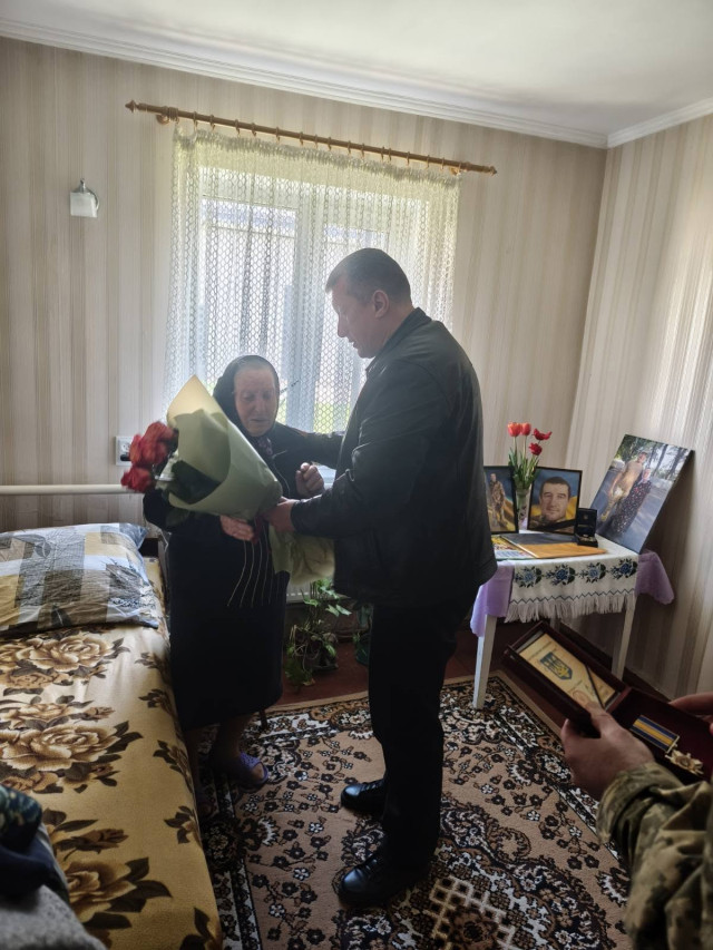 Сьогодні селищний голова Богдан Іус та начальник відділу військово-цивільного співробітництва Першого відділу Володимирського районного територіального центру комплектування та соціальної підтримки Анатолій Бойко урочисто вручили нагороду матері загиблого військовослужбовця Корсак Тамарі Панасівні.