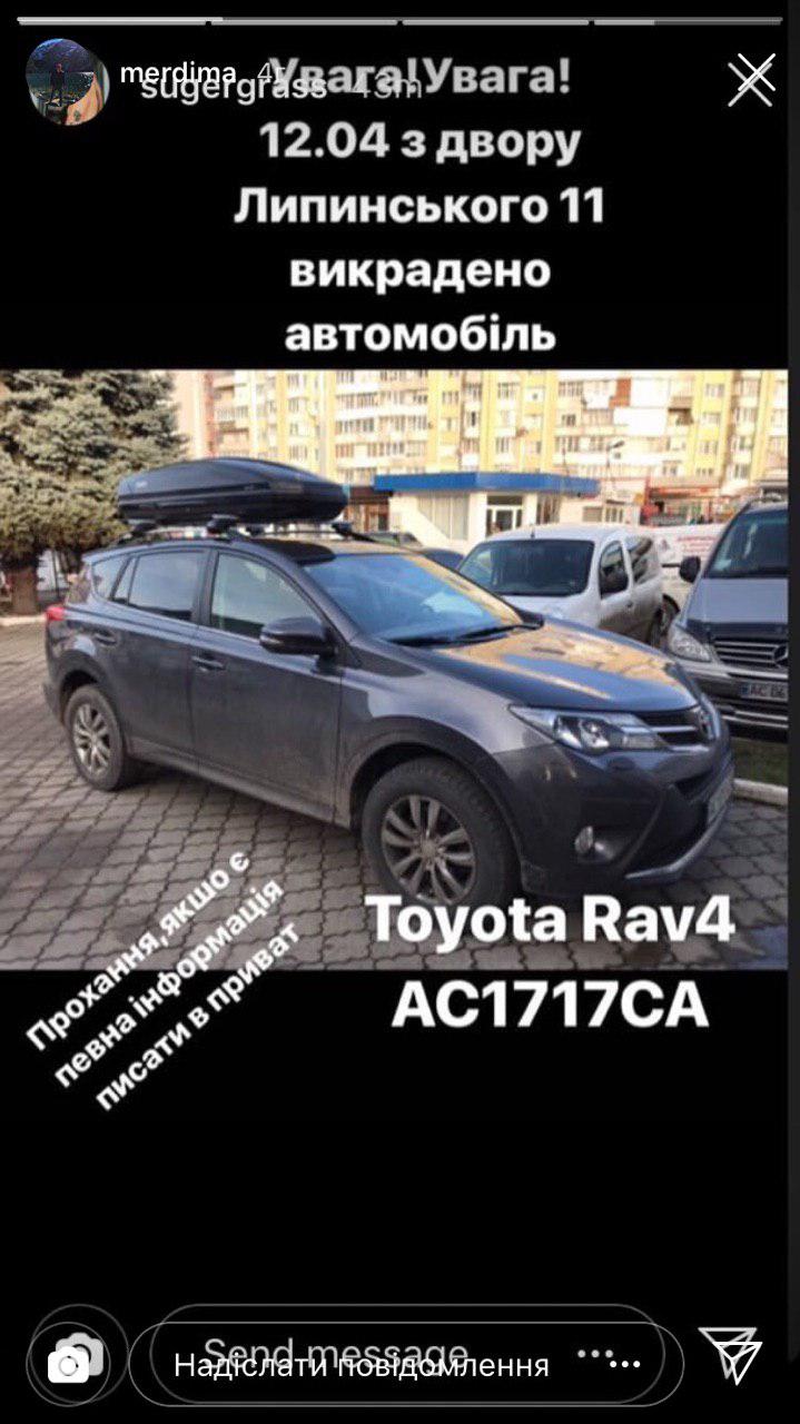 Легковика викрали в Олександра 12 квітня з двору на вул. Липинського, 11. Номерні знаки Toyota Rav 4 AC1717CA.