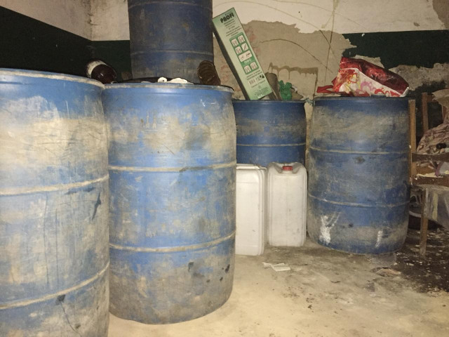 Зокрема, під час проведення огляду з незаконного обігу вилучено 1150 літрів спирту, яка знаходилась в пластикових ємностях різних об’ємів орієнтовною вартістю 300 тисяч гривень.