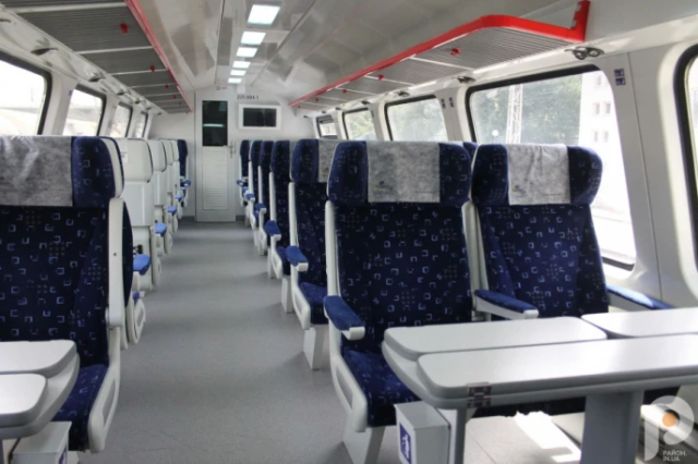 Старший стюарт Антон Приян розповів, що потяг вміщає понад 600 посадкових місць. Він поділений на шість вагонів, два з яких мають перший клас комфорту. У них – зручні широкі місця з можливістю регулювання, біля кожного крісла є висувні столики, а також розетки і роз’єми для підзарядки гаджетів. На стіні висить цифрове табло, що повідомлятиме пасажирів про зупинки, а також телевізор.«У п’ятому вагоні в нас знаходиться буфет. Там можна прийти, замовити кави чи чаю, попити. Вагони нижчого класу теж досить комфортні. Тільки мають трохи інші крісла, які не регулюються і не мають вмонтованих столиків», – розповідає Антон Приян.Поїзд також обладнаний сповивальними столиками в головних вагонах, пандусами та місцями для перевезення людей з інвалідністю, тримачами для велосипедів, системами відеоспостереження, кондиціювання, вентиляції, пожежної сигналізації та пожежогасіння, вакуумними туалетами. Також у поїзді є онлайн-бібліотека та QR-коди для зворотного зв'язку щодо якості перевезень.Машиніст потяга, що поспіхом визирає з кабіни, на запитання чи відрізняється управління ним він керування старими поїздами каже: «Це як порівняти машину на механіці і машину-автомат».До слова, це вже другий двоповерховий електропоїзд Skoda, який був відремонтований та повернутий на маршрут. Перший запустили у грудні 2021 року. Зараз він курсує з Києва до Чернігова. До цього часу поїзди п’ять років не експлуатувалися, оскільки потребували значного ремонту.