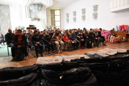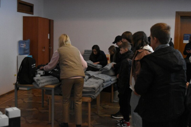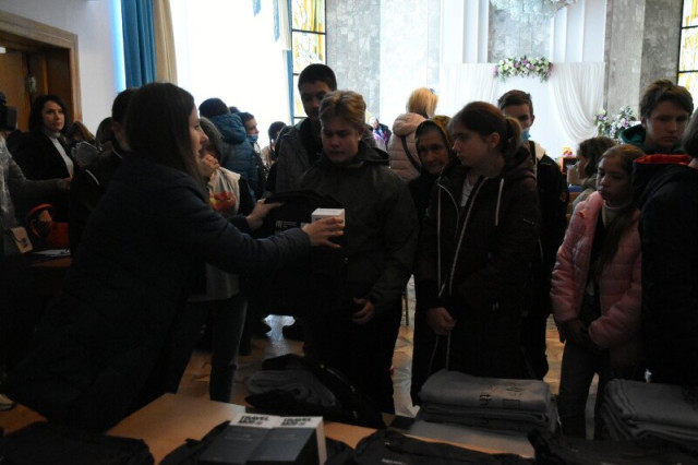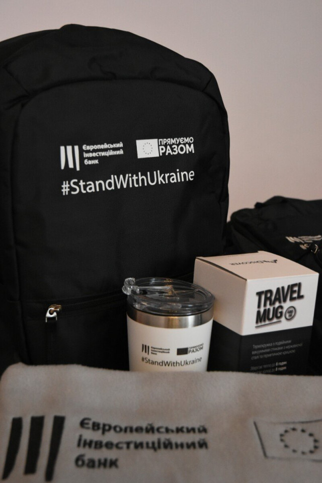 50 дітей вказаних категорій підліткового віку отримали у подарунок так звані «тривожні наплічники» – рюкзаки, пледи та термокружки з логотипом Європейського інвестиційного банку (ЄІБ). З цією фінансовою установою Луцьк поєднує багатолітня плідня співпраця, тож «тривожні наплічники» стали черговим проявом солідарності європейських партнерів.