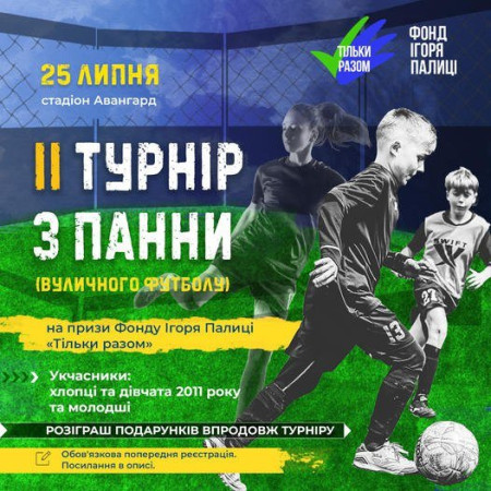 ІІ Турнір з панни (вуличного футболу) відбудеться 25 липня 2023 року з 10:00 на стадіоні «Авангард» (проспект Перемоги, 7а).