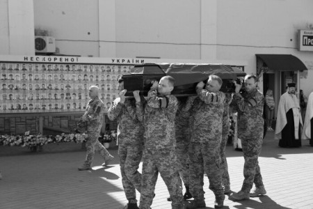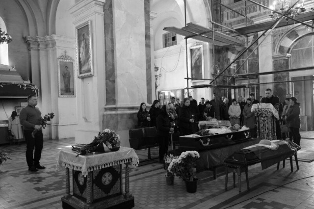 Після завершення заупокійного богослужіння труну з тілом захисника пронесли Театральним майданом.