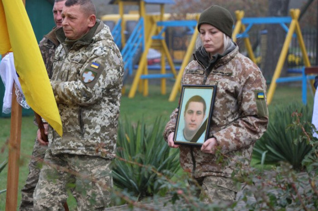 Люди на колінах зустріли катафалк з тілом військового, який загинув 18 жовтня під час виконання бойового завдання щодо захисту територіальної цілісності та незалежності України в районі населеного пункту Черкаське Порічне Курської області російської федерації.