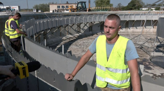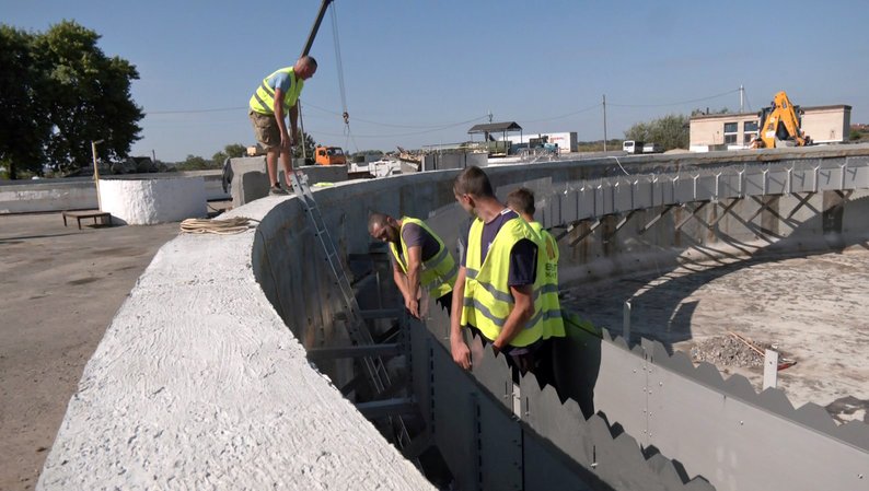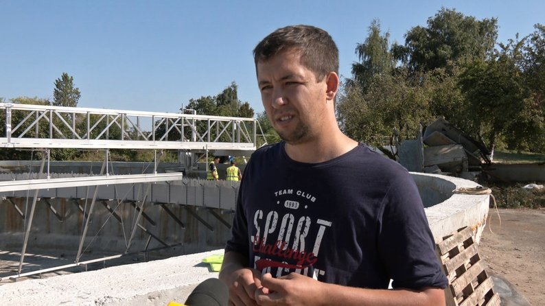«Всі бетонні конструкції залишилися, зробилась їхня гідроізоляція, виконався захист усього фундаменту. Нюанси об’єкта в тому, що все робимо під час його роботи. Всі наші дії ми координуємо з представниками водоканалу», – зазначив виконроб.У первинному радіальному відстійнику вода буде освітлюватися, тобто очищатися, шляхом відстоювання, каже робітник Дмитро Прилепа. Зі слів монтажника, всі елементи на об’єкті працівники закріплюють здебільшого вручну.