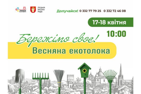 У Луцькій міській територіальній громаді відбудеться традиційна щорічна екологічна толока «Бережімо своє!». Цьогоріч акцію приурочено до Дня довкілля, який відзначатимуть в Україні 18 квітня.