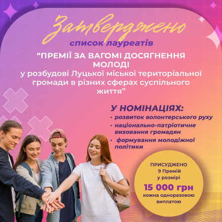Запровадження премій є важливим кроком у підтримці молодих лідерів громади, сприяє підвищенню їхньої громадської активності та залученню до процесів розвитку Луцької міської територіальної громади.