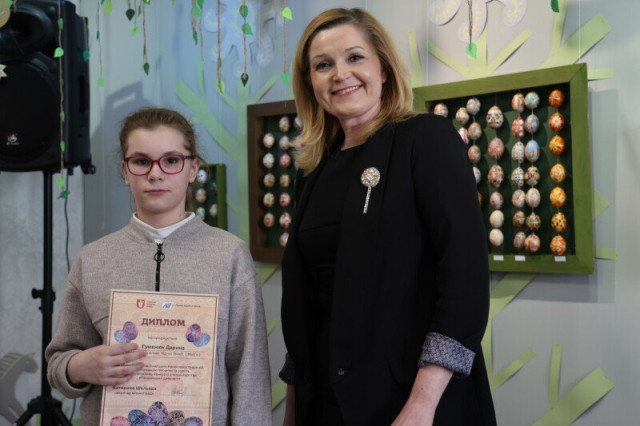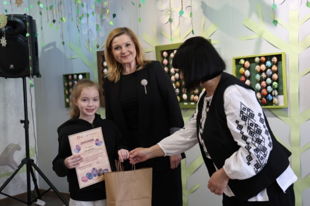 «Багато років поспіль я маю нагоду вітати вас із особливим святом – відкриттям виставки-конкурсу. І щоразу, переступаючи поріг художньої школи, відчуваю тут позитивні емоції, черпаю енергію у ваших роботах та виставках. Ваші діти надзвичайно обдаровані. Не кожен з нас, дорослих, може вивести настільки чіткі лінії чи створити такі оригінальні композиції. І я вдячна вам, викладачі, за роботу з дітьми. Нехай свято Великодня, яке ми будемо відзначати незабаром, принесе вам віру, надію, любов, а у ваших душах нехай ніколи не згасає вогник творчості», – сказала Ірина Чебелюк.Ірина Чебелюк та директор департаменту культури Тетяна Гнатів вручили переможцям і лауреатам виставки-конкурсу подяки Луцької міської ради та подарунки. Адже цьогорічна експозиція – ювілейна, 30-та за рахунком. Загалом упродовж десятиліть у шкільному творчому змаганні взяли участь 6000 школярів, які розписали близько 23 600 писанок.