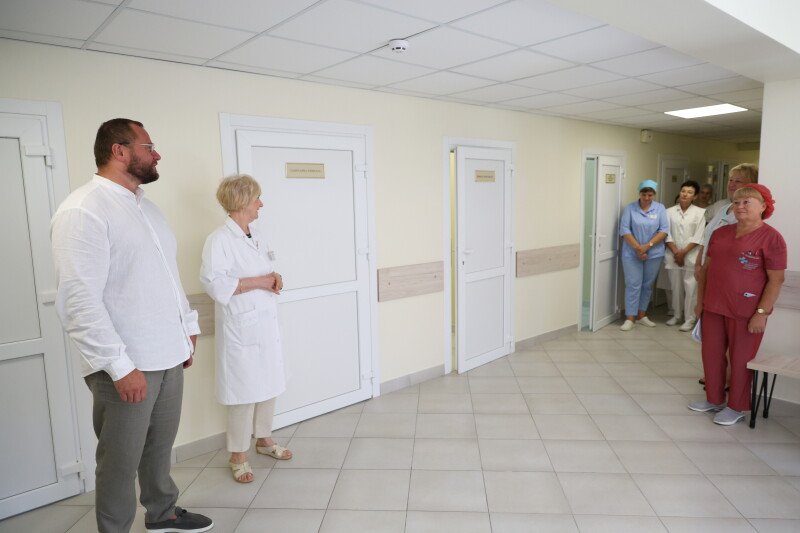 «Важливо, що без участі міського бюджету відбуваються такі осучаснення та покращення умов і для пацієнтів, і для медичного персоналу. Це відділення, куди поступають планові хворі. У нас є приймальне відділення, куди потрапляють хворі, яких привозить швидка допомога, та ургентні хворі. Тут також є процедурні кабінети, фізіотерапія. Все оновлено, повністю зроблений ремонт в санвузлах, бачимо світлі, гарні коридори.