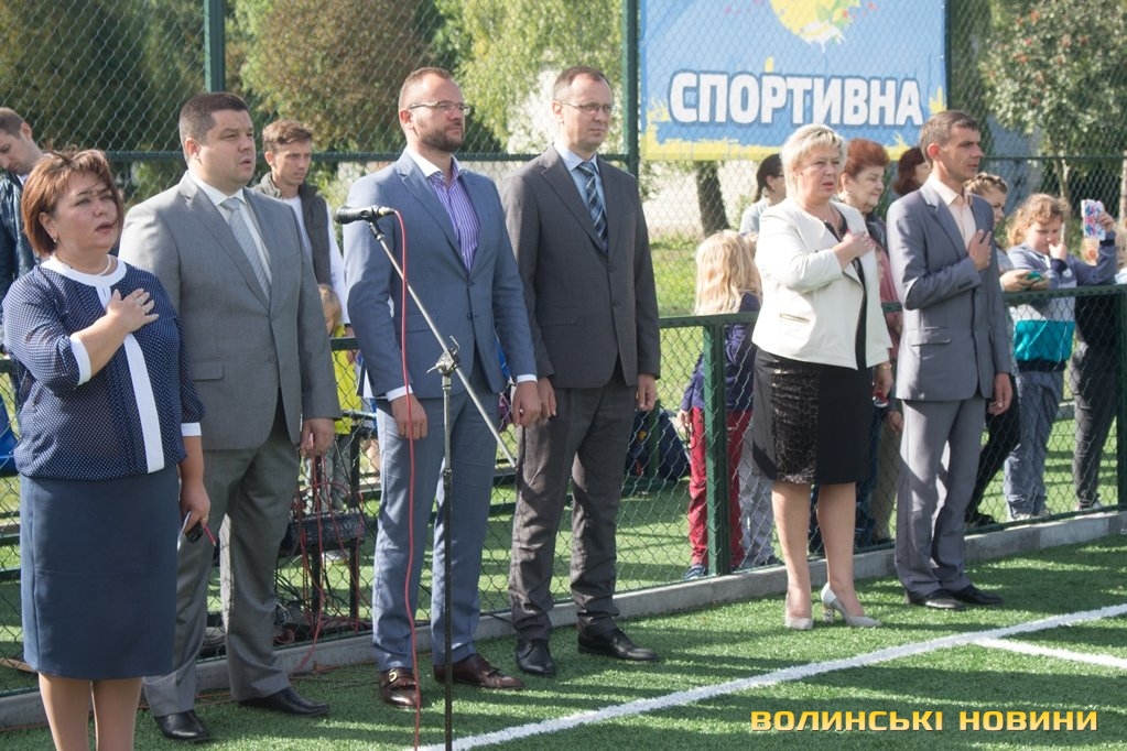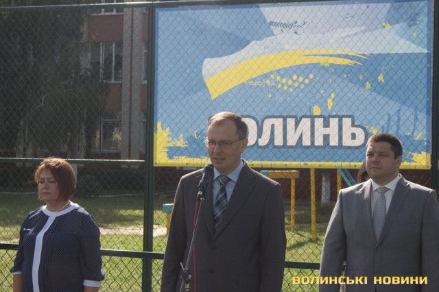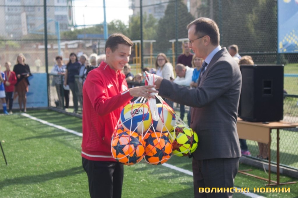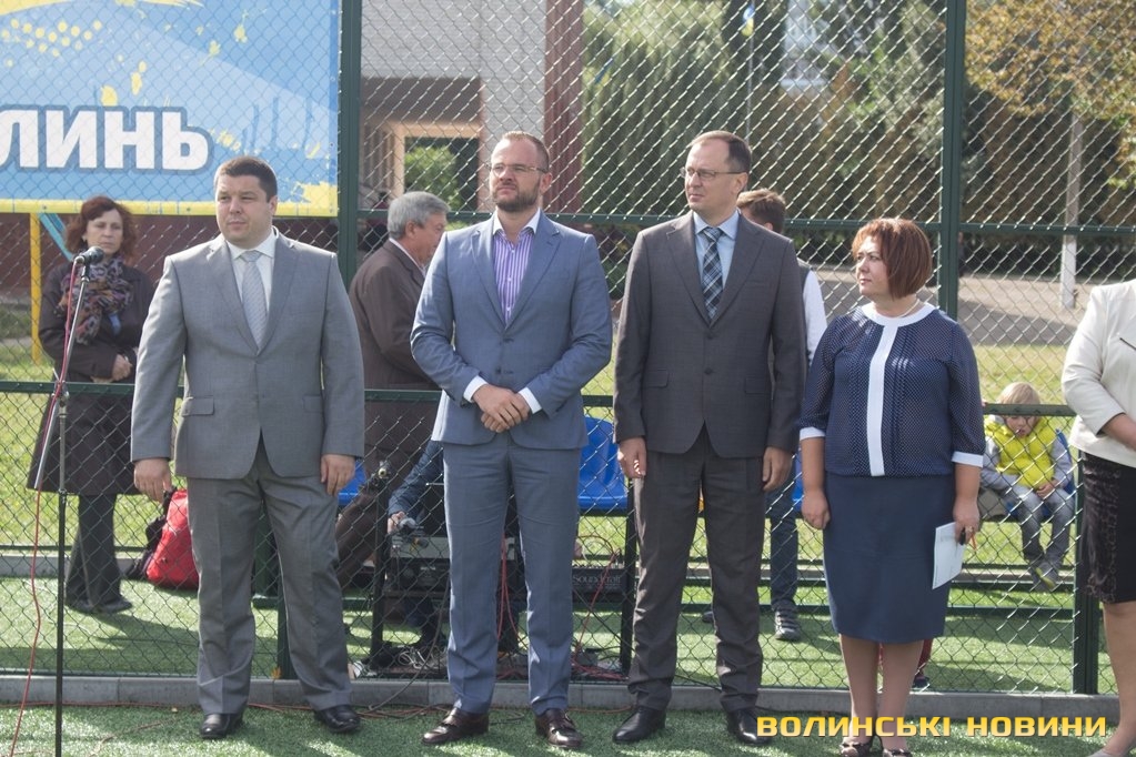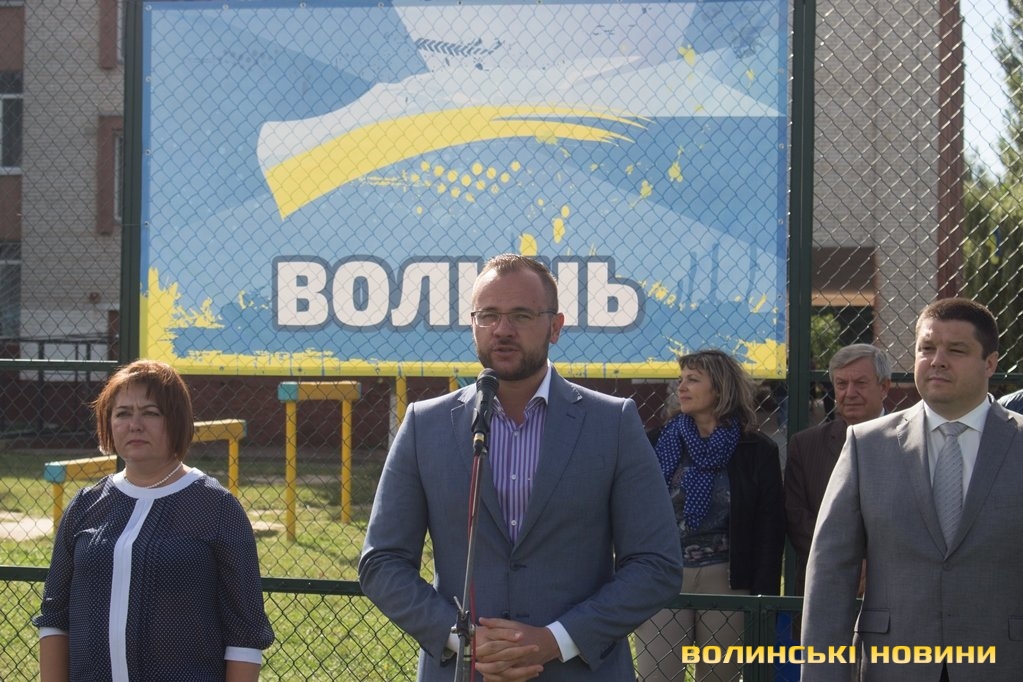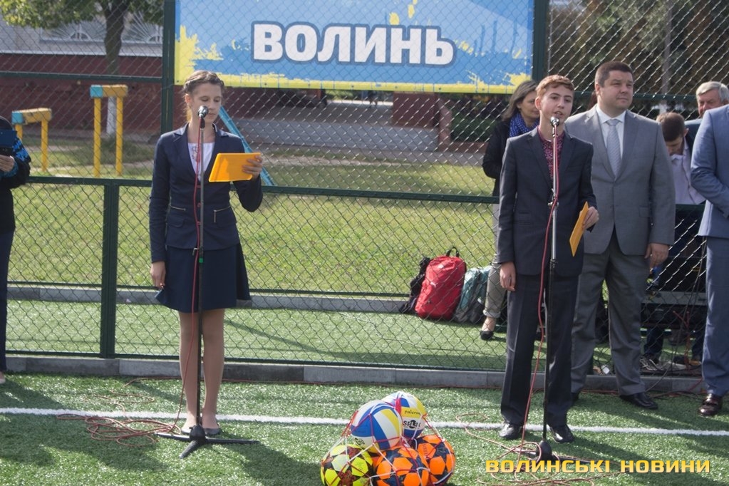 Заступник голови правління Фонду Ігоря Палиці «Тільки разом» Орест Маховський передав привітання від засновника Фонду «Тільки разом», голови Волинської обласної ради Ігоря Палиці. Він зауважив, що це вже 21 школа Луцька, яка отримала футбольне поле.