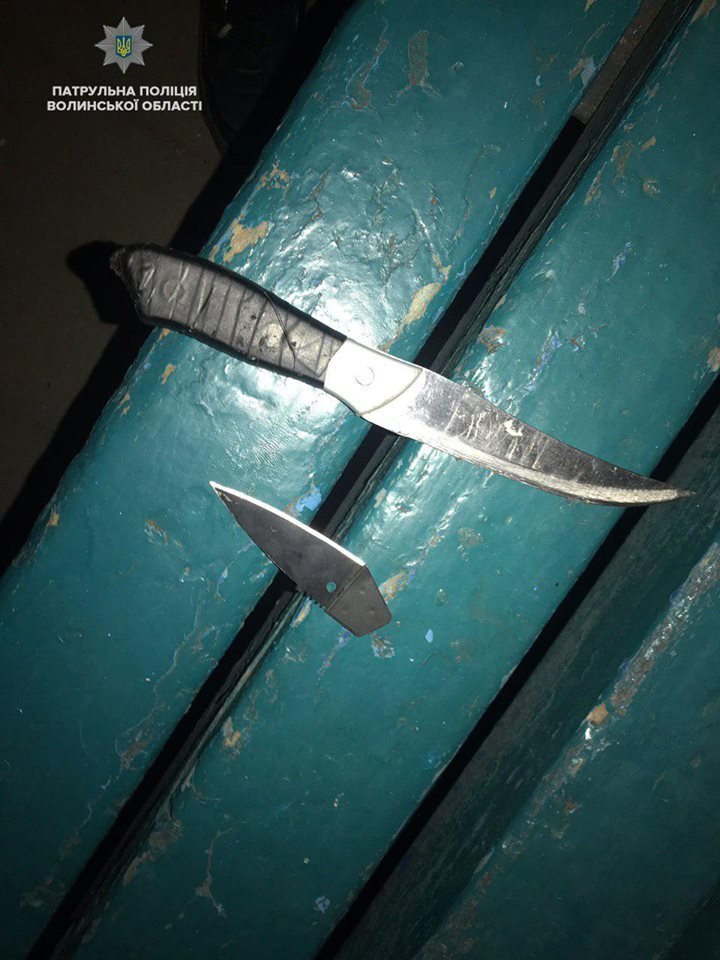 На місці події патрульні виявили чоловіка, який тримав біля своєї шиї предмет, схожий на ніж, та погрожував порізатись, повідомили у патрульній поліції Волині.