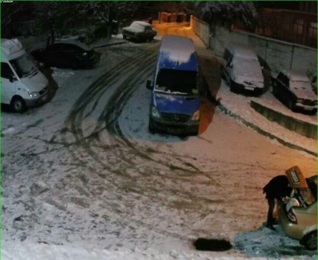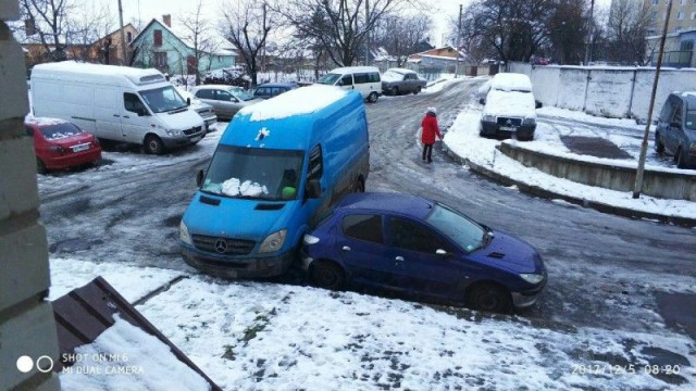 Вночі, коли надворі потеплішало, а сніг почав розтавати, бус зісунувся. До того ж ледве не протаранив припарковане біля входу в будинок легкове авто. Чи обійшлося без пошкоджень, поки не відомо.