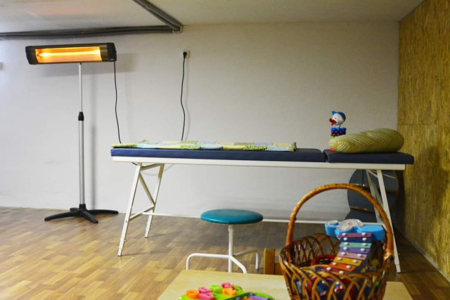В укритті обладнали додаткове приміщення і для центру ранньої реабілітації, де працюватимуть і масажист, і психолог, і логопед, і дефектолог. А після перемоги це приміщення зможуть використовувати як спортивну залу, коли погода не дозволятиме дітям займатися на вулиці.