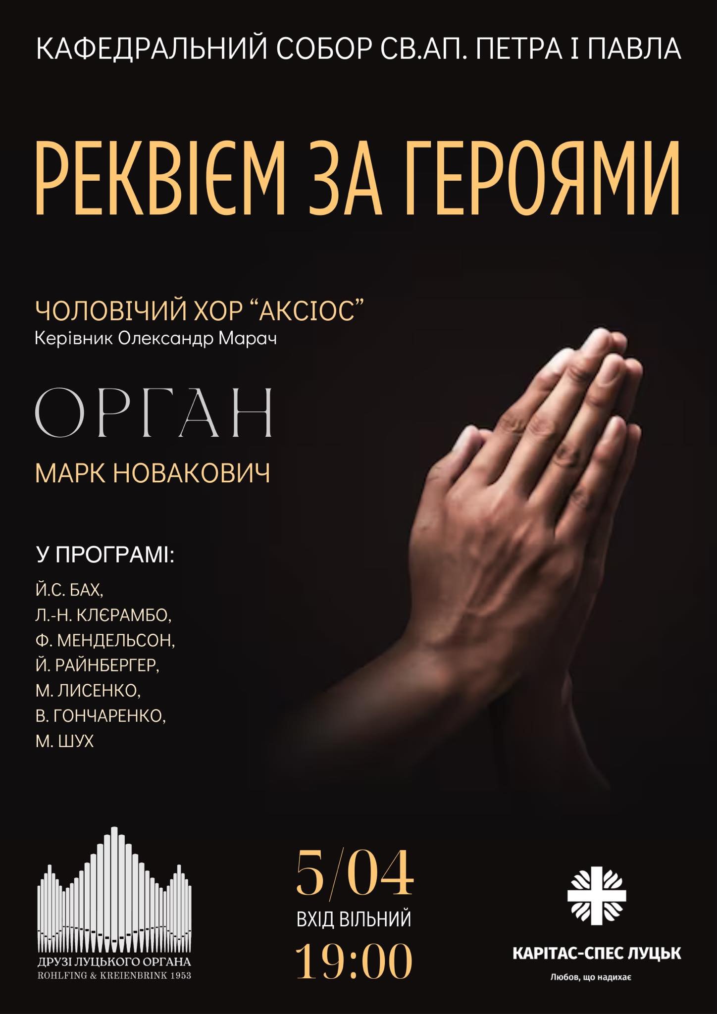 5 квітня у Кафедральному соборі святих апостолів Петра і Павла відбудеться «Реквієм за Героями» – концерт, присвячений тим, хто віддав своє життя за нашу свободу.