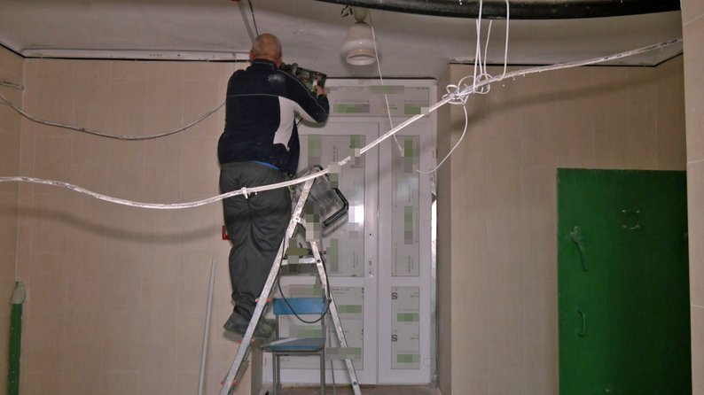 «У 2022 році ми зробили туалет в протирадіаційному укритті, у 2023-му в тому ж укритті поклали плитку на підлогу і трішки окультурили стіни, перешпаклювали стелю. Цього року планувалося доробити повністю це укриття: підлога, стіна, вентиляція. На підлогу стяжку залили, і думаю 2-3 тижні і будемо класти плитку», – сказав директор школи.Як розповів будівельник Віктор Романець, зараз в укритті навчального закладу майстри монтують підвісну стелю та кладуть плитку. «Плитку вклали, фугуємо, на стіни плитку клали. Зараз будемо займатися встановленням», – сказав майстер.Заняття в ліцеї відбуваються у дві зміни, розповіла семикласниця Христина Борщ.