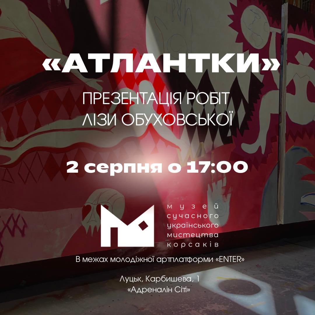 У середу, 2 серпня, о 17:00 в Музеї Корсаків відбудеться презентація робіт Лізи Обуховської з проєкту «АТЛАНТкИ» в межах молодіжної артплатформи «ENTER».