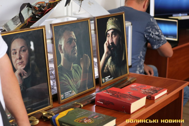 «Я починав служити у ТрО Волині. У 2015 році опинився у складі 14-ї бригади. Дружина була родом із Чернівецької області. Познайомилися на полігоні у 2021 році, далі все закрутилося. Вона загинула у 2023-му. Тут хоч збережеться її портрет, бо ми всі не вічні. Хоч і тяжко було віддавати», – поділився Олексій Макарчук.Читати ще: Шматки російських ракет, БТР, форма Залужного: залишки війни у Луцьку. Фоторепортаж