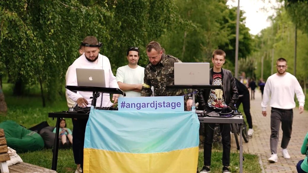 Зібрані гроші діджеї передадуть у волонтерський штаб «Ангар», який вже об’єднав навколо себе чимало музикантів, акторів та діячів культури.Екран, де під час виступів транслюють фото та відео про наслідки війни
