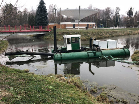 На каналах в Центральному парку почав працювати земснаряд, який робитиме зимувальні ями для риби, розмулення та збільшувати глибину.